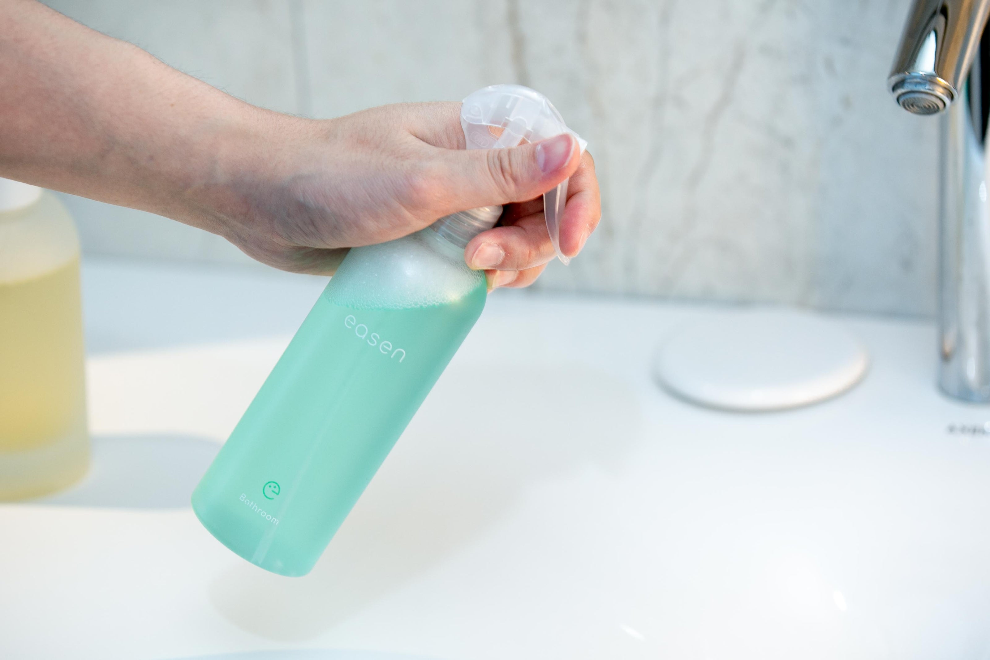 Refill your easen bathroom cleaner powder. Shake for several seconds to dissolve the powder